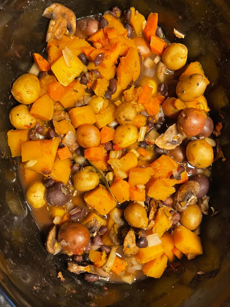 This is my vegan take on the traditional Campfire Stew that typically features pork and winter vegetables. In this version, butternut squash and black beans come together in a slow cooker and the result is a satisfying, low-calorie/low-fat entrée packed with vegetables, fiber, and protein.